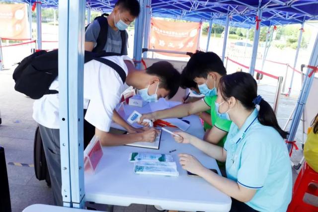 盼望着,盼望着,风尘仆仆的你走来了,迎新现场,各项工作顺畅有序。各个小组积极配合学校的疫情防控需要,学校执行严格的防疫措施,在疫情防控常态化的要求下,学校进一步简化迎新报到工作流程,确保萌新报到安全有序。