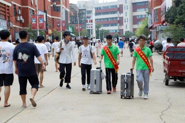机电工程系30余名学子为8号和11号两天报到的新生,自发的参与到迎新志愿者队伍当中,组成了一支特殊的“助力开学,迎新气象”志愿服务队,温柔的话语、无声的帮助,一举一动都是对新生最真挚的关心。