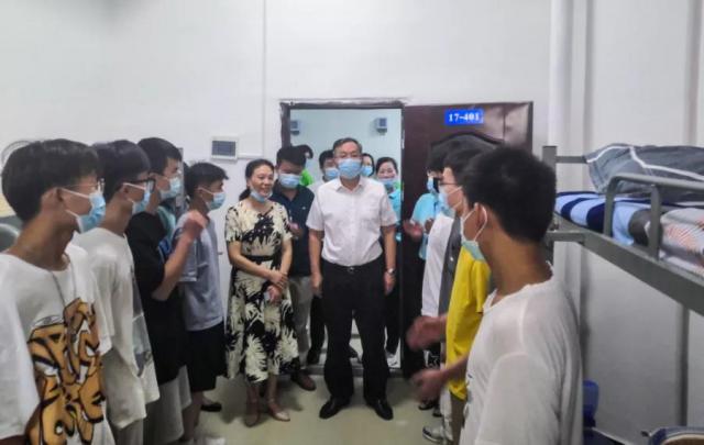 2021年9月22日,学院党委书记万玉青,学院党委副书记、院长雷筱芬,学院党委委员、副院长宋小兵,学院党委委员、副院长刘国红等院领导前往迎新现场视察迎新工作,看望前来报到的新生,慰问参加迎新工作的老师及志愿者们。查看迎新工作安排布置情况,然后对食堂、教室、寝室进行全方面的检查,叮嘱大家严守疫情防控要求,通力合作,认真负责,全力做好迎新工作。