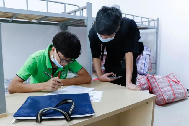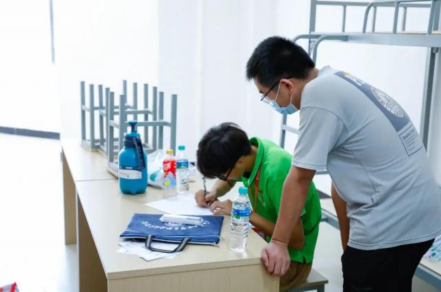 针对此次迎新机电系设立了三个站点。第一站为门口的审核站:检测体温、查看健康码、核酸检测报告、14天行程轨迹查验;第二站为宿舍登记站:验证身份信息、分配寝室;第三站为材料收集站:团员档案、学生档案、回执单、录取通知书。