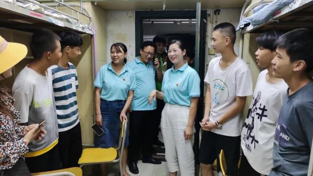 按照学校疫情防控要求,目前学校还处于封闭管理阶段,学生非必要情况尽量不出校门,为缓解新生入学情绪,做好安抚工作。2021年9月11日19:00,机电工程系党支部书记、系主任马龙凤,学工副主任刘颖,教学副主任刘耀元,21级机电中高对接班辅导员巩莉,2021中职工业机器人班房冰,21级数控中高职班龚春芬到学生宿舍9栋进行新生寝室走访活动。对学生寝室进行了安全、卫生检查,并对同学们的返校情况进行了解。