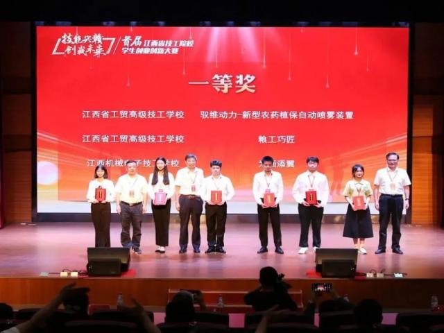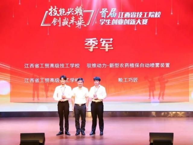 2021年9月15日,由江西省人社厅主办的“技能兴赣 创我未来”首届江西省技工院校学生创业创新大赛在江西省医药技师学校举行。我院机电工程系选拔推送的《驭维动力——新型农药植保自动喷雾装置》、《缘定此家——相遇缘于此刻》项目分别荣获创意组一等奖、创业组三等奖,其中《驭维动力——新型农药植保自动喷雾装置》以创意组第一名的成绩入围总决赛,获得季军,取得历史性新突破。