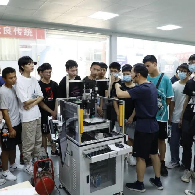 学院领导此次专程亲赴一线看望慰问机电师生,更让集训师生充分感受到了学院的温暖与期盼。各竞赛队成员纷纷表示,一定扎扎实实,勤学苦练,攻坚克难,再接再厉。在大赛备战过程中,将牢记使命,精益求精,敢于拼搏,善于争胜,全力以赴,在比赛中赛出风格,赛出水平,力争在技能竞赛的舞台上交上一份满意的“机电答卷”。 梦想在此启航,身边皆是榜样 为了让2021级新生更好地了解本系实践教学条件和专业设置, 在今后的学习过程中更加得心应手,增强同学们的学习兴趣以及提高对本专业的认识,曹成海副处长组织新生于2021年10月1日来到系部智能制造中心、数控实训中心参观。