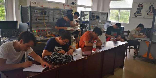李殷教授示范安装现代电气控制柜 暑期虽然天气炎热,但李教授结合实际情况做了详细的培训计划,使参训人员的实践能力都有较大提升,特别是选手们通过短短5天指导能够完成2019年的赛题,这对大家是个极大的鼓舞。李教授高度的责任心和专业能力得到了大家的高度认可。