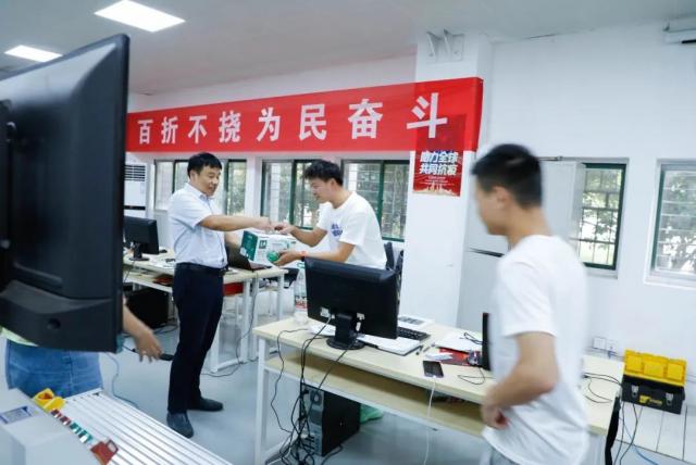 中秋情意浓,慰问暧赛场。临近中秋之际,学院党委委员、副院长宋小兵及机电系班子看望备战2021教师教学能力国赛、2021年全省职业技能大赛师生们及专业系学生干部们,慰问假期仍坚守一线集训的师生,送去节日的问候和诚挚的祝福。 首站来到智能制造中心103看望备战2021年全国职业院校技能大赛教学能力大赛教学团队,宋副院长热情与教师握手送节日关怀,他说学院领导十分重视教师能力大赛,教学团队层层过关斩将,争得宝贵入场券,希望珍惜机会,扎实训练,继续创造新的惊喜。