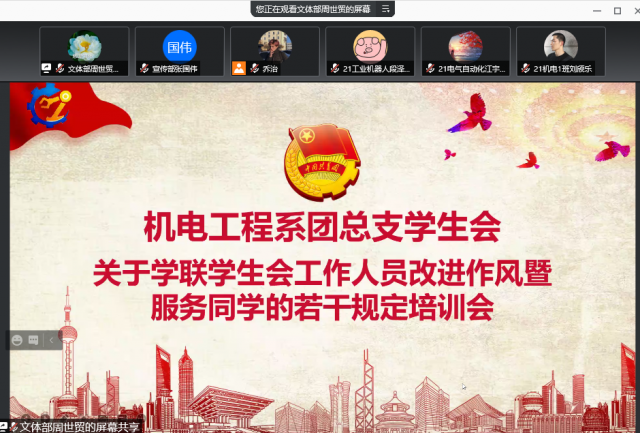 “青年兴则国家兴,青年强则国家强。青年一代有理想、有本领、有担当,国家就有前途,民族就有希望”。为深入学习贯彻习近平新时代中国特色社会主义思想,特别是习近平总书记关于青年工作的重要思想。机电工程系团总支学生会于2021年10月10日12:45在线上举办了第十八届机电工程系团总支学生会全体见面会暨学生干部培训会。