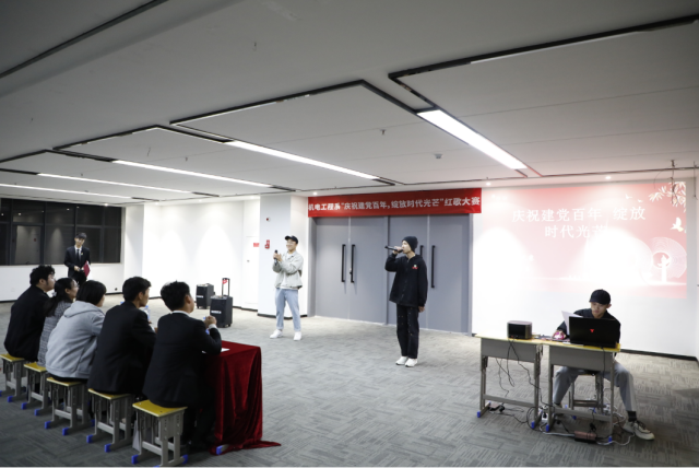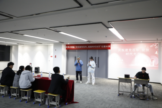 为热烈庆祝建党100周年,讴歌中华民族实现伟大复兴中国梦的奋斗历程,继承和发扬中国共产党优良传统,激励学生爱国思想,丰富校园文化。机电工程系于2021年10月22日晚上举行了“庆祝建党百年,绽放时代光芒”校园歌手大赛。本次校园歌手大赛的评委有:机电工程系党支部书记、主任马龙凤,学生党支部书记、副主任刘颖,辅导员罗晓雯,团总支副书记李昌宇,团总支学生会主席团成员谭礼宾、林浩龙。