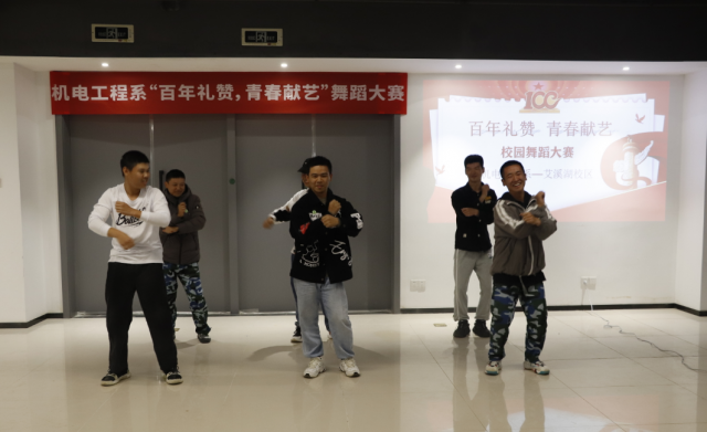 2021年是中国共产党建党100周年,是“十四五”规划开局之年,为充分展示广大青年爱党爱国的情怀和蓬勃向上的精神风貌,进一步引导青年学子听党话、跟党走,凝聚建功新时代的澎湃青春力量。机电工程系于2021年10月22日晚上“百年礼赞,青春献艺”校园舞蹈大赛。校园舞蹈大赛的评委有:机电工程系党支部书记、主任马龙凤,学生党支部书记、副主任刘颖,机电工程系团总支书记张敏玲,团总支学生会主席团成员赵声鼎、刘阿文,学习部部长刘渊博。