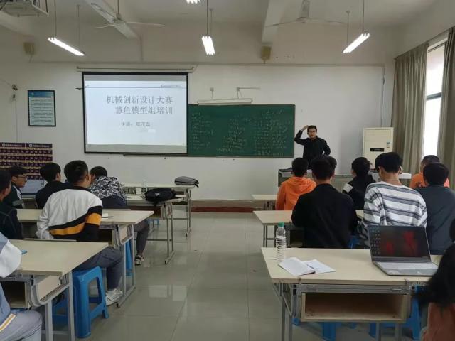 为培养江西工业贸易职业技术学院机电学子的创新意识和慧鱼模型搭建的动手能力,同时选拔第十届全国大学生机械创新设计大赛(慧鱼组)优秀作品,2021年10月29日机电工程系邀请北京中教仪科技有限公司郑茂磊工程师开展“机械创新设计大赛”慧鱼模型组培训专题讲座。