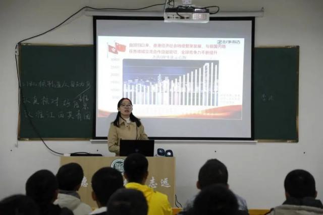 为贯彻落实全国高校思想政治工作会议和全国学校思想政治理论课教师座谈会精神,根据中共中央、国务院印发的《关于深化新时代学校思想政治理论课改革创新的若干意见》《教育部关于加强新时代高校“形势与政策”课建设的若干意见》等文件要求,更好地引领和服务学生,营造良好的学习氛围。 2021年 10月 22日,机电工程系罗晓雯老师为2021级机械制造与自动化班全体同学开展《完善“一国两制”制度体系,护航香港长治久安》的形势与政策讲座。