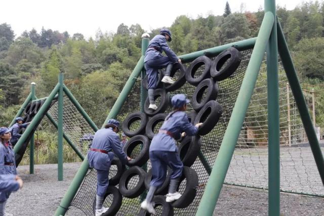 稍作整顿后在基地老师的带领下到达步云山练兵体验红军练兵,通过开展爬过障碍墙、穿越封锁线、投弹等实践活动,通过实景教学体会到了井冈山革命斗争时期红军战士的艰苦卓越,学习红军战士们的团队精神和吃苦耐劳、艰苦奋斗的作风。 传唱红歌经典 勇担时代责任