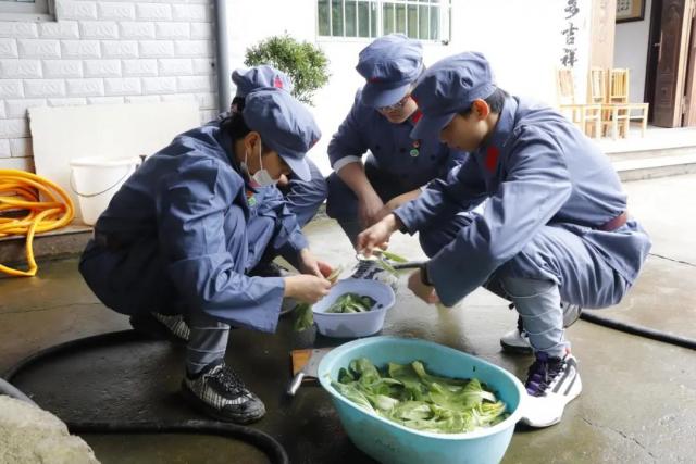 中午,学员们以班为单位来到茅坪镇马源村访民情,自做红军餐,当地老乡给我们提供了食材,并借用了原生态的厨具,自己亲自动手制作红军餐,从中了解历史革命、忆苦思甜,体悟了当年红军艰苦岁月中的达观。 茨坪旧址编草鞋 长征精神永相传