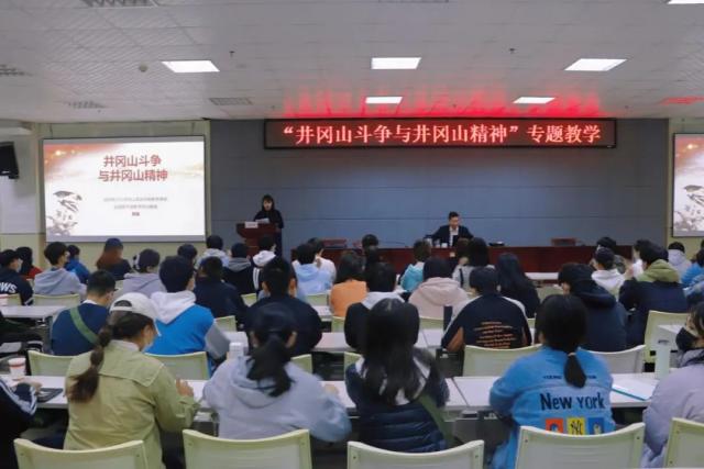 之后老师以“井冈山斗争和井冈山精神”为题,从井冈山革命根据地创建的历史背景、井冈山革命根据地概况、井冈山革命根据地的历史划分和毛泽东引兵井冈山的历史过程讲述井冈山斗争情况。生动的让每一位学员了解井冈山的斗争史,领略到井冈山精神的伟大。