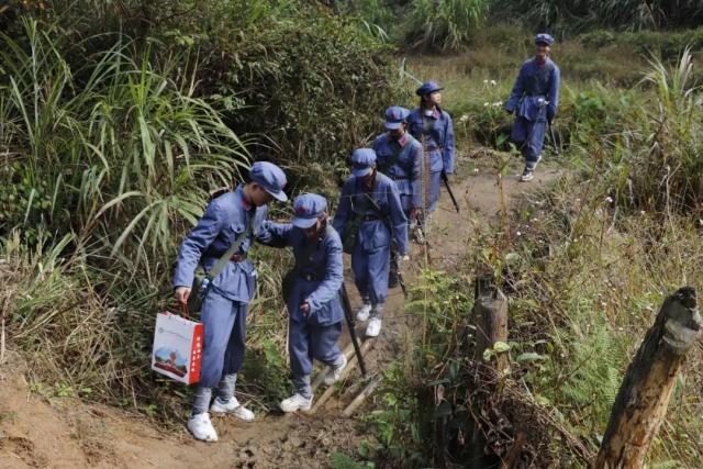 马源村以深挖红色资源,开辟“胜利之路”研学路线,红色沃土跃动着发展的蓬勃朝气。10月30日,在基地老师的带领下,学员们踏上了“挑梁小路”追寻革命先烈的脚步,即使道路崎岖、泥泞,但所有学员都不曾放弃、在这条坎坷的路上体会当时红军挑上百斤粮食走在这些不频繁的山间小路,一场身心的洗礼,让我们更加坚定的传承发扬不怕困难的拼搏精神和革命信念。