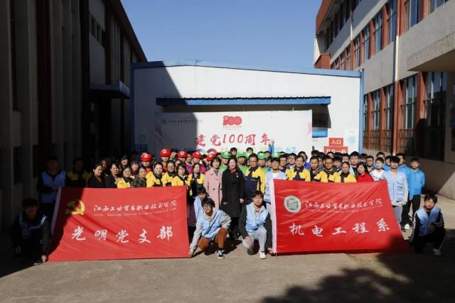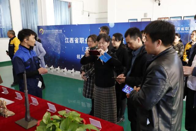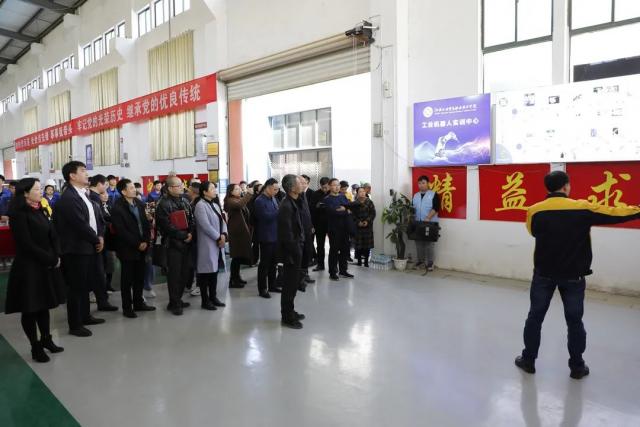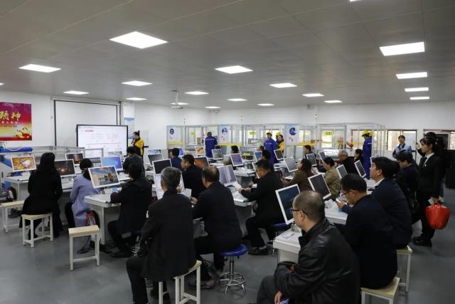 在这个风和日丽的初冬,来自江西省商务学校、江西省民政学校、江西工程学校、江西通用技术工程学校、南昌向远轨道技术学校、丰城中等专业学校、高安中等专业学校、新余市中等专业学校、兴国中等专业学校、修水中等专业学校、江西省华忆电子工业中等专业学校、德兴市职业中专学校、东乡机电中等专业学校、井冈山经贸学校等共15所学校的校长等相关领导们于2021年11月30日中午1:00,来到江西工贸学院机电工程系参观并指导工作。在学院党委委员、副院长赵淑华的陪同下,他们来到机电工程系智能制造中心考察,机电工程系师生代表在党支部书记马龙凤的带领下整齐地站立在门口齐声欢迎,并积极做好引导参观。