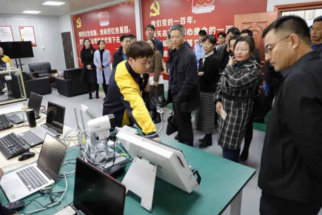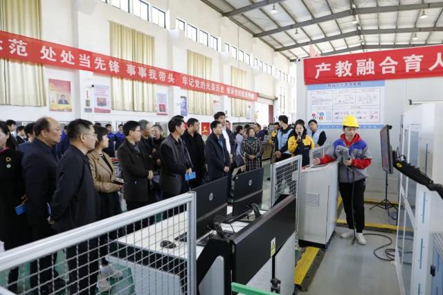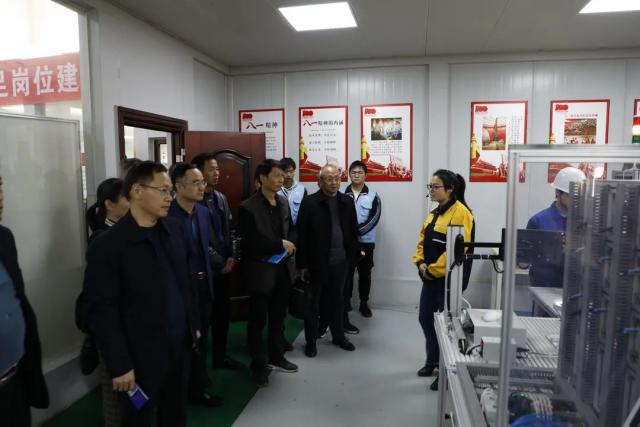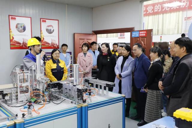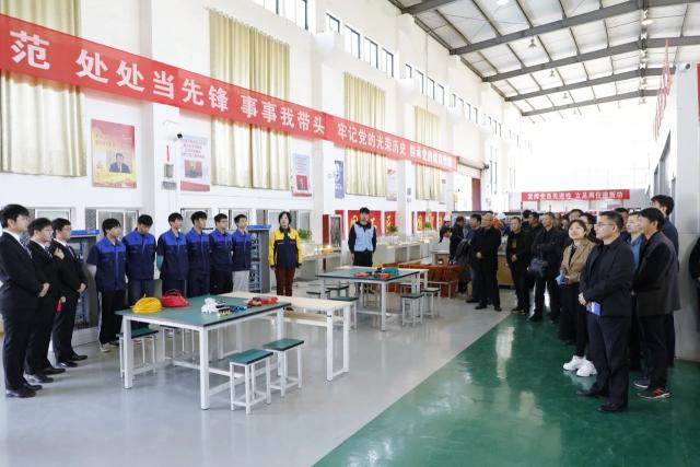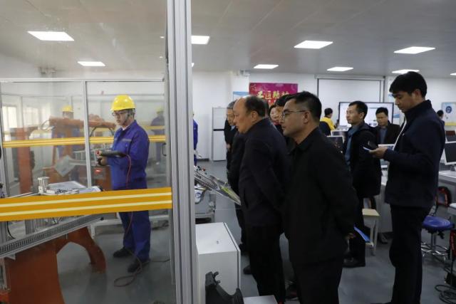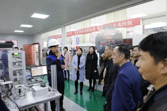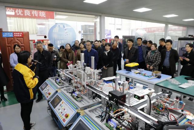 在参观过程中,中职学校的校长等领导们对机电工程系的教学环境和先进齐全的实训设施大加赞扬,纷纷驻足拍照并仔细询问相关信息。