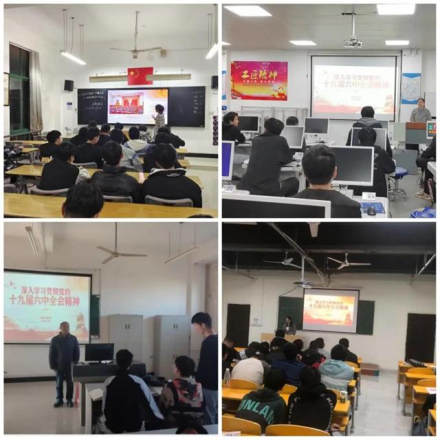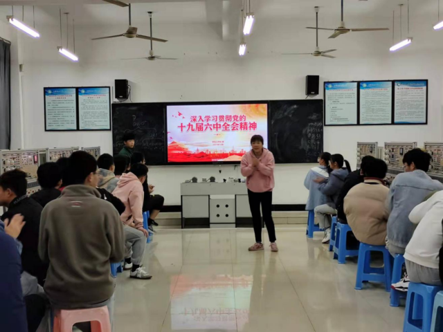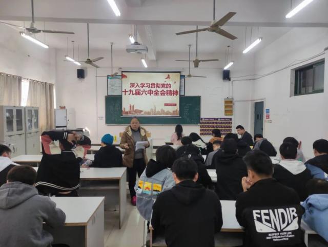 2021年11月8日至11日,中国共产党第十九届中央委员会第六次全体会议在北京召开,这是在“两个一百年”奋斗目标的历史交汇期,中国共产党迎来又一次意义重大的盛会。机电工程系积极关注全会动态,了解全会内容,迅速组织开展学习党的十九届六中全会精神专题宣讲会,引领广大机电学子一起领悟会议精神,坚定不移跟党走。 为深入学习党的十九届六中全会精神,12月6日至9日,机电工程系各班辅导员根据系部工作安排,在班级开展党的十九届六中全会精神宣讲活动,围绕“如何学习好、宣传好、贯彻好党的十九届六中全会精神”进行专题宣讲,把学习贯彻宣传党的十九届六中全会精神持续引向深入。