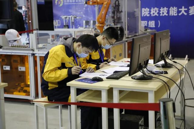 经过两天紧张激烈的比拼,来自全省18支代表36名参赛选手勇于进取、奋勇争先。在实操时,参赛选手们沉思细想、稳健如飞,用坚持不懈的态度、追求卓越的精神来展现机电学子的精湛技艺,彰显了“精益求精、赣鄱工匠”的工匠精神。