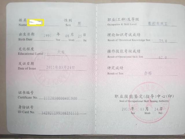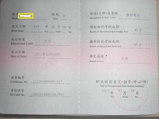 我的技能证书 本专业学生可获得劳动部颁发的车工中级、维修电工中级和高级职业资格技术等级证书。