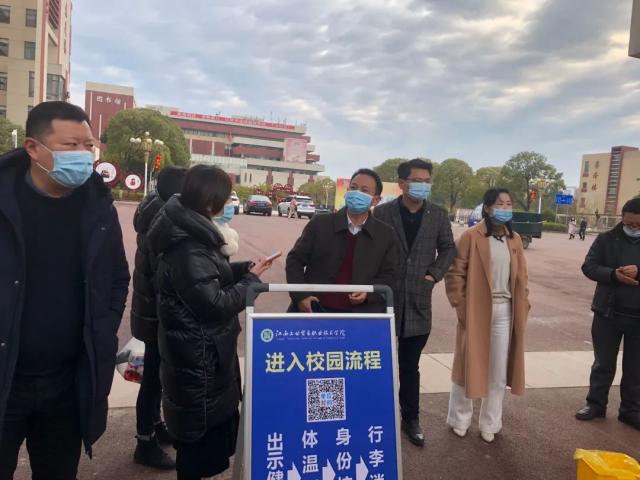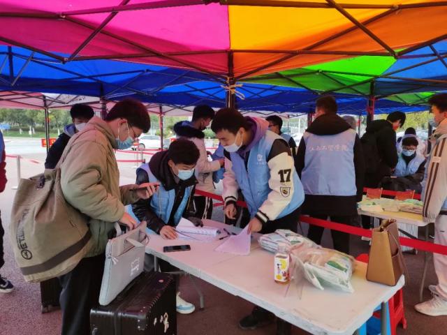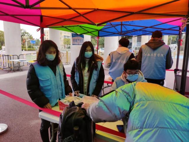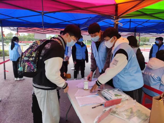 志愿者们为返校学生测温、扫码、登记