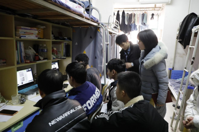 在学生宿舍,机电工程系副主任刘颖开展了突击检查大功率电器,并详细了解了自2月23日上午开展线上教学以来教师授课准备、校园网络支撑、线上学习具体情况,鼓励学生积极配合学院线上教学安排,共同努力完成好特殊时期的学习任务。从检查情况看,各班教学状况总体良好,教师能够按时开展线上教学活动,线上教学形式丰富多样,授课过程精神饱满,音视频效果良好。
