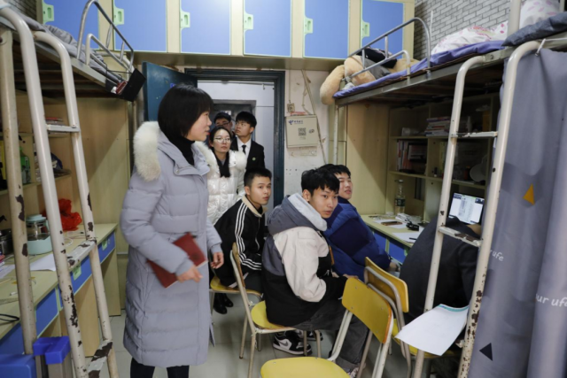 为落实学院春季开学工作部署,保障2022年春季教学活动有序进行,按照学院疫情防控要求,学生返校后在宿舍进行线上教学。同时为了进一步加强宿舍管理,确保学生人身安全,创造安全,文明、和谐的宿舍环境,缓解开学压力。2022年2月24日14:30,学院党委委员、副院长刘国红,学工处处长李尊华,机电工程系副主任刘颖,辅导员老师深入学生宿舍进行了安全、卫生检查,上课情况检查,并对同学们的线上教学情况进行了解。