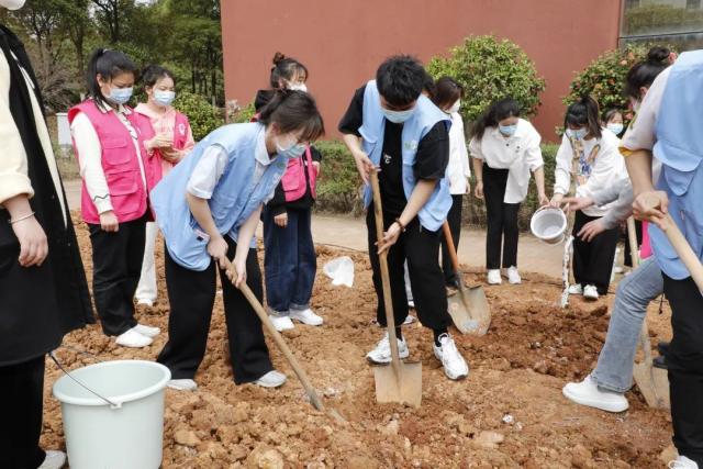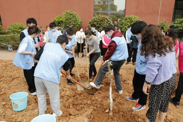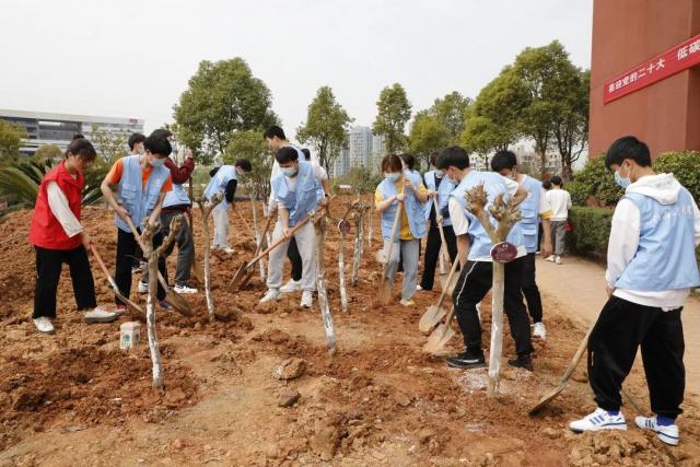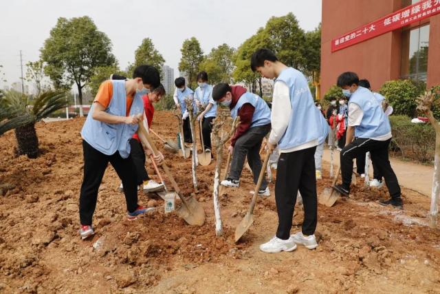 一锹土,播种的是生机;一桶水,浇灌的是未来。活动中,青年志愿者们和老师们明确分工、互相协作,三五人一组手拿工具,挽起衣袖,干劲十足。大家拿铁锹挖坑植苗、灌溉浇水,现场一派热火朝天。经过一中午的努力,一株株树苗在我校“安家落户”,一棵棵新栽种的树苗在绿化带里傲然挺立,为美丽的初春时节再添绿色生机。