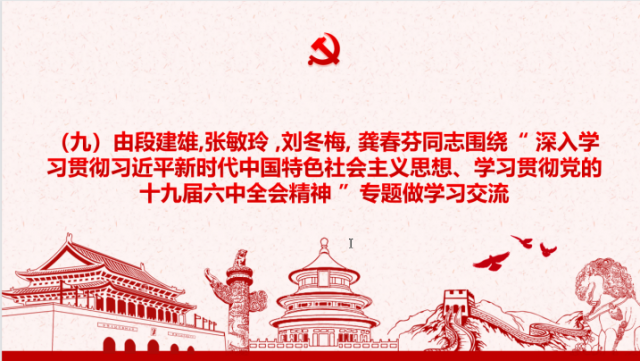 专题研讨会过后,由段建雄、张敏玲、刘冬梅、龚春芬等4位同志围绕“ 深入学习贯彻习近平新时代中国特色社会主义思想、学习贯彻党的十九届六中全会精神 ”专题做学习交流。