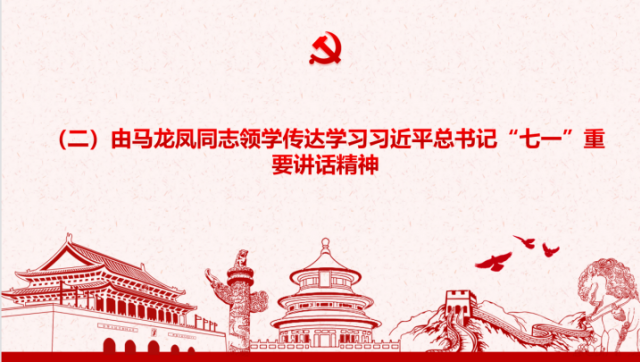 由党支部书记、主任马龙凤领学习近平总书记“七一”重要讲话精神。深刻领会和把握习近平总书记“七一”重要讲话的重大意义、丰富内涵、核心要义、实践要求,自觉牢记在心中、坚决落实到行动上。