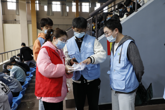 用耐心抵御前线 服务是抗疫的保障。为更好地服务校内外师生,行政口和辅导员队伍的娘子军们每日排班执勤。张敏玲老师就是其中一位。为确保全系上千名学生以最高效率做好每一次核酸检测 ,她带领着学生志愿者组织各班有序排队核检,“每位同学间隔一米,戴好口罩,打开昌通码准备核酸检测”,“下雨台阶湿滑,同学们排队候检时注意安全”......一声声的叮嘱只为学生们能更安全健康。为全系每一位师生都完成了每次核检,不落一人,她耐心的询问和统计大家的情况,走进宿舍查看每位同学的核酸检测记录,有些同学因为系统问题没有查询到记录十分着急,她也会耐心的告诉同学们不要着急,真实做过的都会一一记录好,向系部反馈。