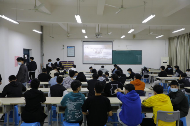 活动开始前,工作人员开始了紧张的准备工作,在308教室安排人员维持候场秩序,控制好参赛学生的座位间隔,并提醒他们疫情期间需配戴好口罩减少交流。每组选手安排一名工作人员,为其计时、记录,整个比赛过程都由工作人员全程陪同,保证比赛的公平,公正,公开。