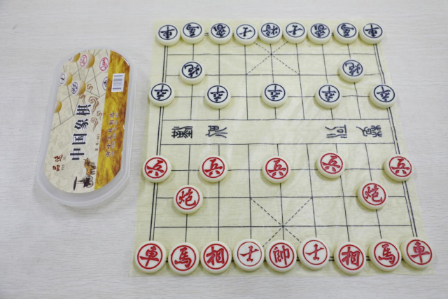象棋 两军对敌立双营 坐运神机决胜败 中国象棋是起源于我国的一种棋,属于二人对抗性游戏的一种,象棋使用方形格状棋盘,圆形棋子共有32个,红黑二色各有16个棋子,摆放和活动在交叉点上。双方交替行棋,先把对方的将(帅)“将死”的一方获胜,由于用具简单,趣味性强,成为流行极为广泛的棋艺活动。