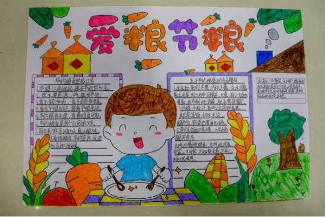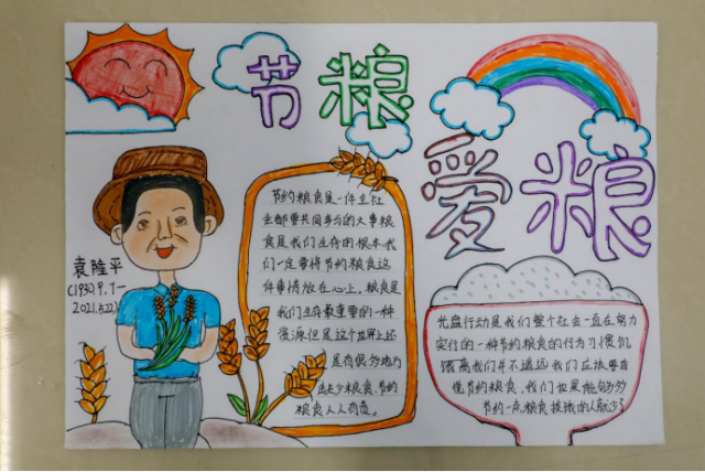 他们用新颖的视角、精心的配色、精巧的构思、丰富的色彩,充分展现了他们的所思所想所愿,帮助了学生们增强节粮爱粮意识。