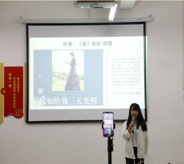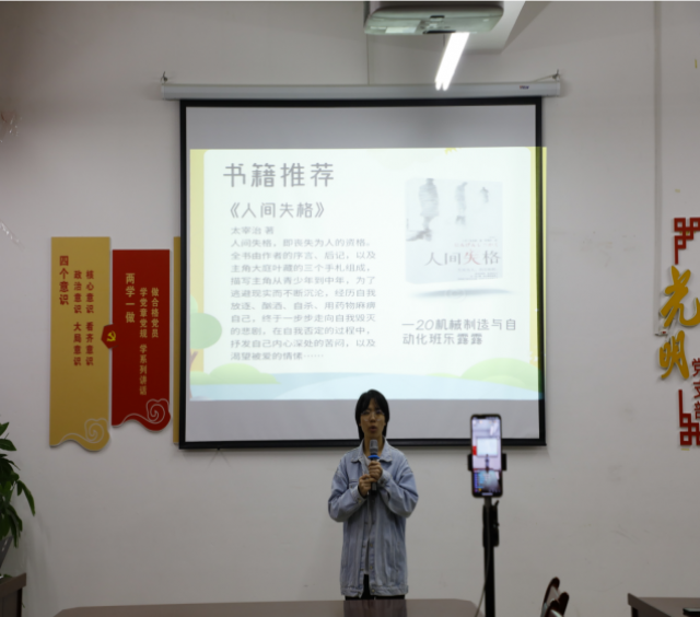 阅读新时代 4月30日18:00,机电工程系“阅读新时代 奋进新征程”主题读书周分享会在厚泽楼324举办,分享会采用选手、评委线下,线上观众以直播的方式进行,机电工程系团总支书记张敏玲老师、团总支学生会干部代表参与此次活动。
