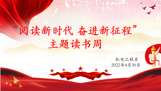 喜迎二十大,永远跟党走,奋进新征程。为迎接党的二十大召开,进一步在广大青少年中营造热爱阅读、讲好中国故事、共建书香社会的浓厚氛围,机电工程系响应学院政策开展“阅读新时代 奋进新征程”主题读书周活动。