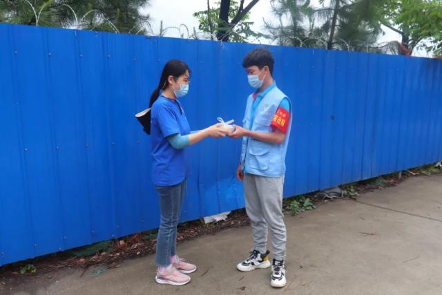 老师们与志愿者们亲切交谈,询问他们执勤站岗情况、巡逻中发现的隐患和整改举措,感谢志愿者们坚守在疫情防控工作一线,共同守护我们的校园。志愿者们坚持15小时轮班驻点值守,对发现问题如校园围栏出现漏洞、可疑人员、违规人员等进行及时上报,在校园内引导学生不要攀爬围栏、不点外卖。我们的志愿者用自己的年轻的臂膀筑起校园疫情防控的“铜墙铁壁”,守护师生的健康安全。老师们叮嘱同学们一定要做好自身安全防护,让我们同心戮力,共同打赢这场“防疫战”。