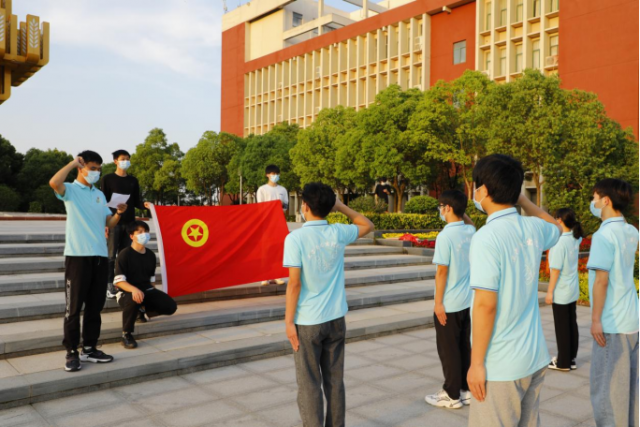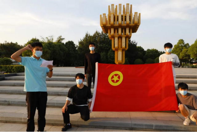 下午时分,金丰凌云雕塑下机电学子新发展的9名团员铿锵有力地重温入团誓词,优秀团员代表史和东、陈林以及新团员代表曹志豪、王心雨同学对建团百年发表重要感言。