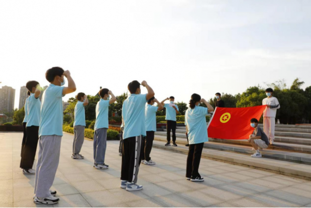 紧接着,由青年学生带领同学们重温入团誓词,青年们面对火红的团旗,举起了右手再次宣誓,重温了当年入团时许下的神圣誓言,学生齐唱团歌,在嘹亮的歌声中,每位团员都接受了一次深刻的思想洗礼,更加深切地感受到新时代团员的精神追求,进一步激发了时代责任感和使命感。
