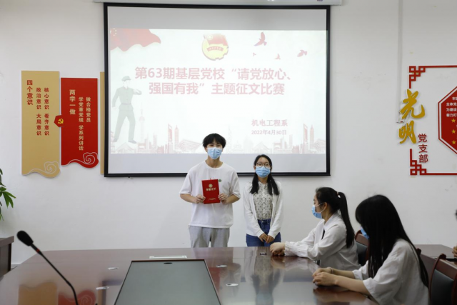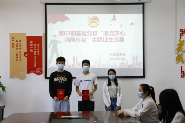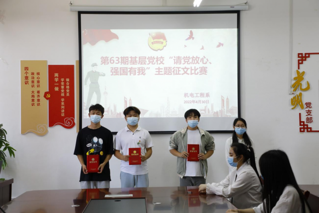 进一步加强对大学生爱党爱国情怀教育,增强大学生对党和祖国的忠诚和热爱之情,激发学生勤奋学习、报效祖国的决心,展现新时代青年积极向上、奋发进取的精神风貌。机电工程系以迎接和宣传党的二十大为主线,加强校园红色文化建设,引导和带动我系学子重温党领导青年运动的光辉历程,组织第63期基层党校学员开展了“请党放心,强国有我”主题征文比赛。