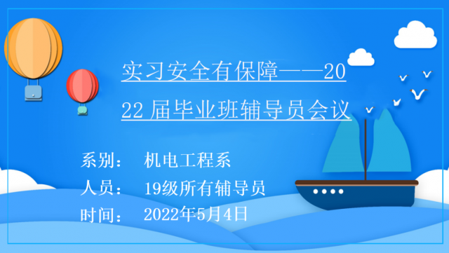 为贯彻落实《关于召开全省大中专院校安全稳定工作视频调试会议的通知》精神以及省厅和本院对于学院2022届毕业生顶岗实习就业工作的指示,提高疫情期间毕业生离校和实习期间的安全意识,确保毕业生在离校实习期间的人身、财产安全。机电工程系于2022年5月4日中午组织开展了“大学生实习安全教育”为主题的线上会议,此次会议由机电工程系主任马龙凤主持安排工作,机电工程系副主任刘颖、学生管理员谢鹏飞老师、就业管理员张惠超老师及全体2022届毕业班辅导员参加了此次会议。