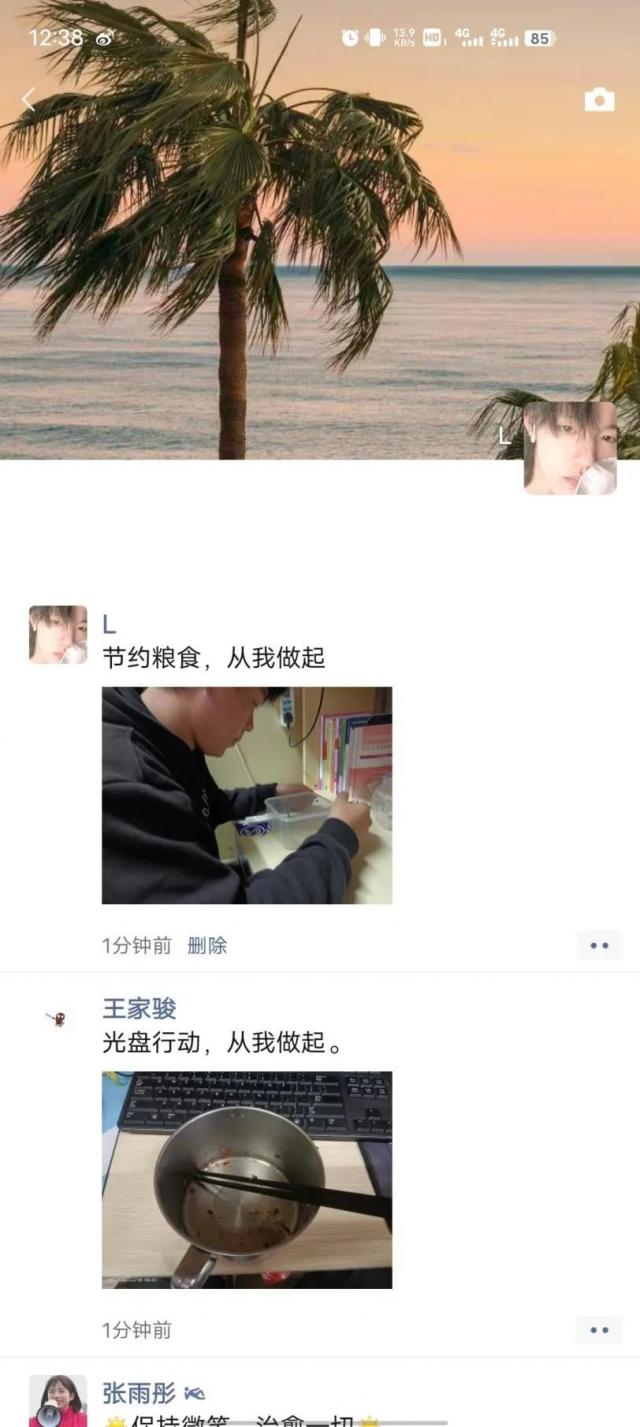 在“爱粮节粮”宣传教育活动的影响下,同学们纷纷加入“光盘行动”当中,积极落实学院疫情防控要求自带碗筷,将食物带回寝室就餐,并积极宣传“爱粮节粮”精神,在朋友圈打卡、“秀光盘”。