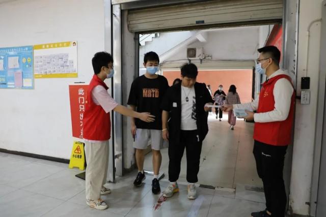 食堂执勤防控疫情 机电工程系青年志愿者在学院食堂宣传“爱粮节粮”精神,倡导学生珍惜、爱惜粮食,做到不浪费,学习节粮知识,增强节粮意识。疫情当下,志愿者们提醒同学前往食堂时应保持间距,戴好口罩,同时还给忘记戴口罩的同学发放口罩。 在此次食堂疫情防控执勤,志愿者们用实际行动担起疫情防控的责任,维护食堂用餐秩序,将食堂疫情防控措施落实到实处。