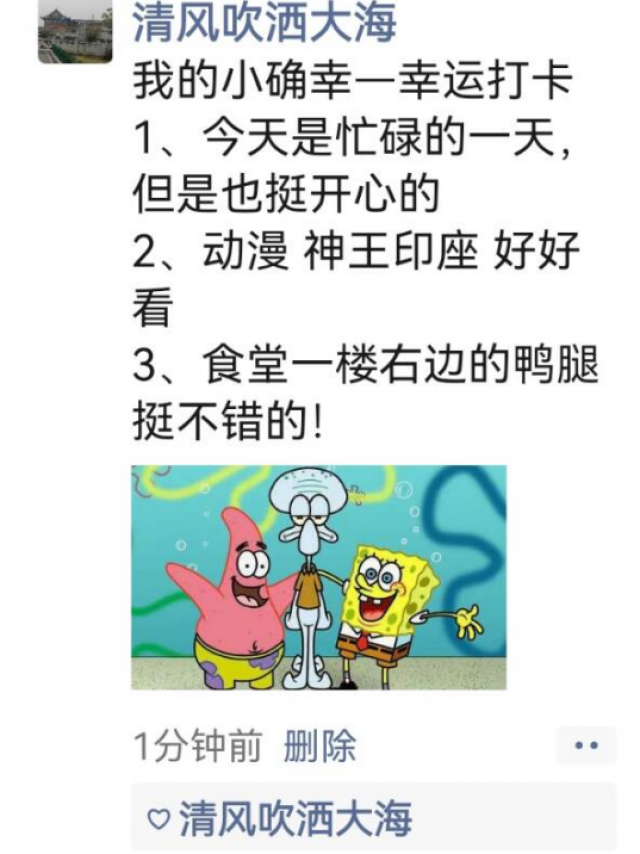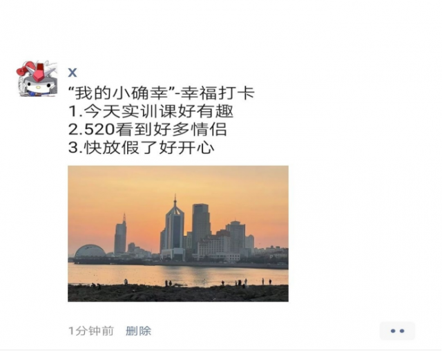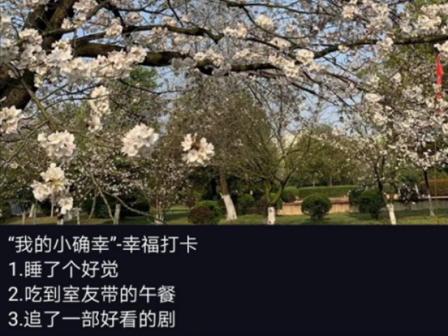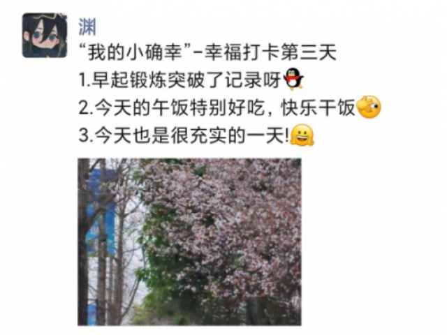 本次小确幸打卡活动在同学和老师中都取得了很好的反响,成功营造分享快乐、分享幸福的良好氛围。不少参与者反映,他们不仅在进行打卡时记录了幸福,还在与其他参与者的打卡交流中分享了快乐。