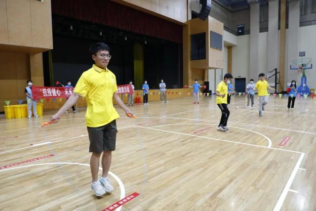 在此次师生心理健康活动中,机电工程系社联部为大家准备了羽毛球、单人跳绳、集体跳绳等体育项目。大家积极参与其中,师生争先恐后投入到跳绳比赛中。在热烈的加油声中,只见一根根彩绳飞舞,大家时而龙腾虎跃,时而轻盈如燕,整齐的动作犹如大家团结一致抗击疫情的信心和必胜的决心。一个个跳动的身影,一根根飞舞的彩绳,一张张开心的笑脸,形成了夏日里一道靓丽的风景。