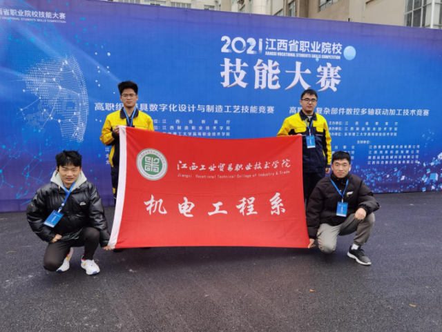 我系黄勇刚、钟慧萍老师指导王水明、刘长海、廖志卓、修集良学生团队在2021年12月参加江西省职业技能大赛“复杂部件数控多轴联动加工技术赛项”团体赛获得二等奖2项。 团队获奖感言: 人生之路,倍感艰辛,确实需要风雨之后的铮骨柔情,磨砺之后的化蛹成蝶! 全省职业院校技能大赛“机电一体化”赛项竞赛团队