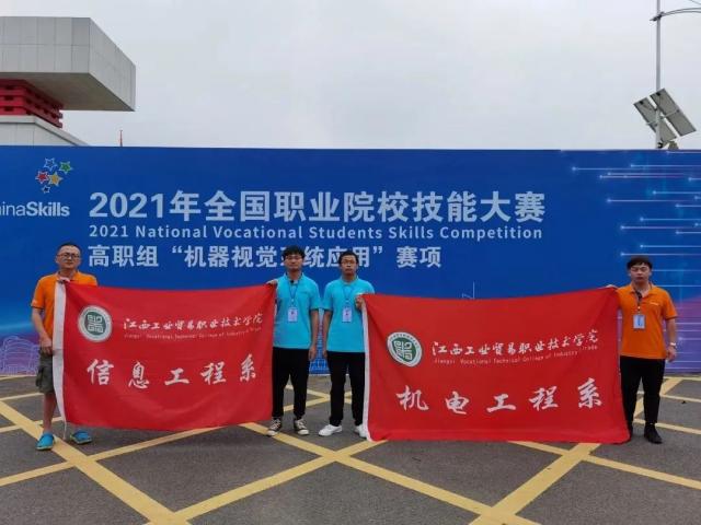 我系刘耀元、刘冬梅老师指导的雷城、李嘉龙、陈祖昀、李盖文学生团队参加2021年5月全国职业院校技能大赛“机器人系统集成”赛项获得二等奖1项。参加2021年12月江西省职业院校技能大赛“机器人系统集成”赛项获得一等奖1项、二等奖1项。 团队获奖感言: 敢拼敢搏,无所畏惧;不断进取,力争上游;相信自己,超越自我;真诚付出,终创辉煌! 全国、全省职业院校技能大赛“机器视觉系统应用”赛项竞赛团队