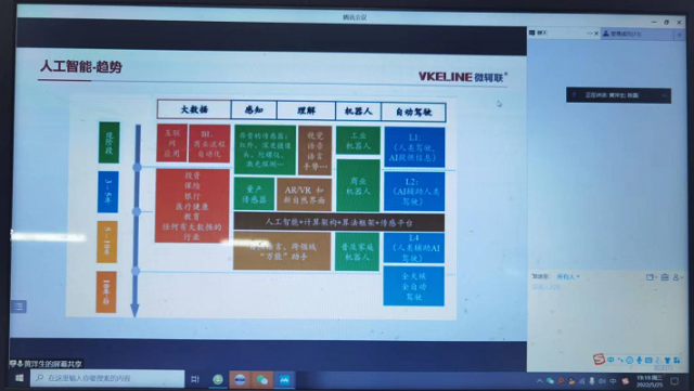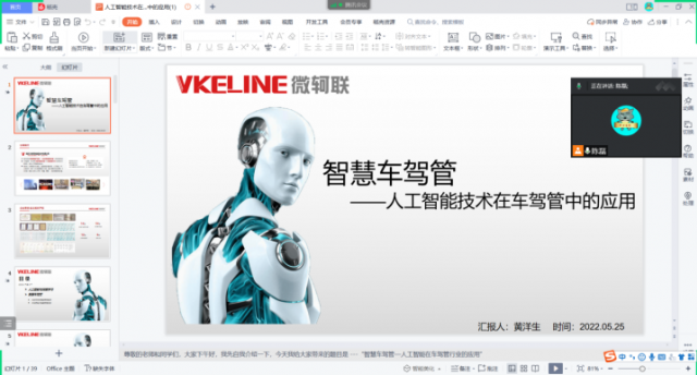 2022年5月25日晚上19点,机电工程系机器人教研室邀请南昌市微轲联信息技术有限公司黄洋生副总经理对人工智能技术应用专业、工业机器人技术专业的师生进行人工智能技术应用于汽车“车驾管”的专题讲座。讲座采用线上方式举办,主讲黄副总经理通过丰富资源、风趣语言、震撼的场景让师生们感受企业的一些高精尖的前沿科技,以及这些科技技术应用到实际生活中的情景。