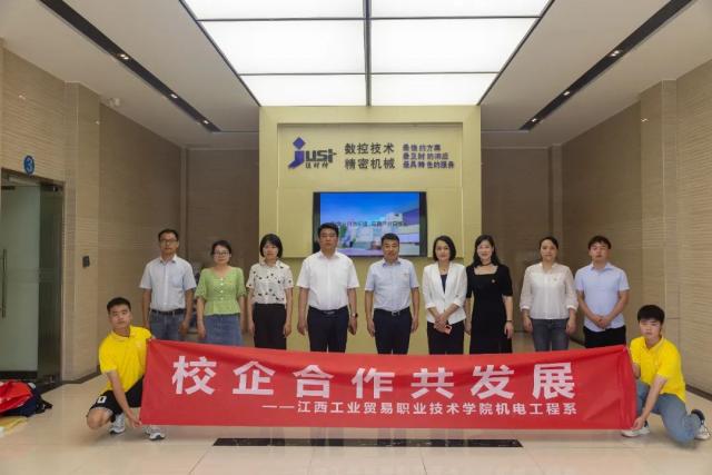 为认真贯彻落实党中央、国务院关于高校毕业生就业工作的决策部署,6月16日下午,江西工贸学院党委委员、副院长宋小兵带领机电工程系党支部书记、系主任马龙凤、副主任刘颖、就业管理员张惠超、各教研室主任及专任教师一行前往江西佳时特数控技术有限公司,与江西佳时特数控技术有限公司董事长刘华、党委书记李莉、人事部长杨丹凤座谈,双方就进一步开展深度校企合作、共研人才培养方案、“访企拓岗促就业”落实到各个专业层面进行合作、建立常态化师资培训基地等进行深入交流。