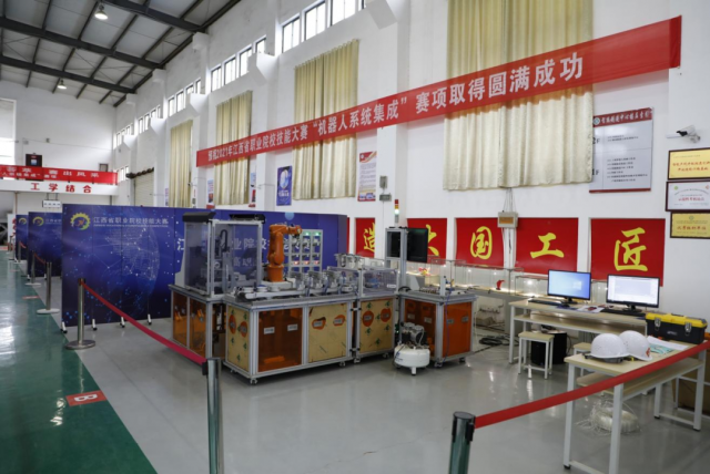 我的专业颜值 江西工贸职业技术学院机电工程系工业机器人技术专业中有优良的实训条件,校内实训智能制造实训基地一个,十个专业综合实训室、三个校外实训基地。同时连续四年承办江西省职业院校技能大赛“工业机器人系统集成”赛项,获得了省教育厅的高度好评,取得国家级成果5项,已成为江西省工业机器人专业培养的“黄埔军校”。