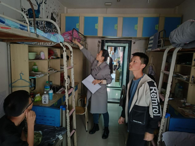 深入宿舍保生活谨小慎微提认识 11月17日中午,晏慧敏副主任带领全系专兼职辅导员在全系宿舍进行了一次全面排查,就楼道消防器械、宿舍内安全隐患进行全面细致的检查。